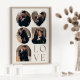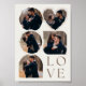 O poster apresenta um arranjo na moda de cinco recortes personalizáveis de fotos em formas únicas, dois circulares, um coração, um arco e um quadrado. Abaixo das fotos, a palavra "AMOR" é elegantemente soletrada em uma fonte macia e neutra, criando uma exibição quente e sincera. O fundo é texturizado num tom bege claro, adicionando uma sensação acolhedora e natural. Esta poster personalizável é perfeita para mostrar memórias queridas em uma colagem bem projetada.