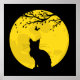 Meu cenário de outono com a silhueta de um gato Maine Coon observando uma borboleta e caindo folhas em frente a uma lua amarela cheio.