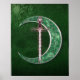 Trabalho de arte Fantasia de uma Lua de Arte Celta Verde com uma espada fantástica cercada por Celtic Knots.