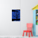 impressão de arte digital "Sombras" da silhueta de árvore contra um céu noturno com lua crescente, refletido em uma piscina. Uma interação entre luz, sombra e reflexão em azul, preto e branco profundo.