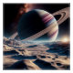 Um poster brilhante da trabalho de arte de "Lua Congelada de um Gigante Anel" do Planetário Prankster.