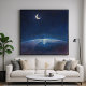 Trabalho de arte de lua crescente vista de cima da terra no espaço num estilo de pintura pastel. Esta peça captura um momento sereno além da nossa atmosfera, onde a curva da Terra encontra a infinita profundidade do espaço. O trabalho de arte é dominado por uma rica e veloz paleta de azul-da-meia-noite, criando uma sensação poderosa de tranquilidade e vastidão. Altas acima, uma lua crescente brilhante pendura como um farol solitário; abaixo, o horizonte da Terra é renderizado em nuvens giratórias e um brilho luminoso. Esta arte usa um estilo texturizado e pareado que dá a sensação de olhar pela janela de uma espaçonave, misturando o realismo com uma maravilha do tipo dos sonhos. Um trabalho perfeito para quem ama astronomia, ficção científica ou temas de exploração. Esta arte pode ser personalizada, impressa e ou baixada.