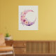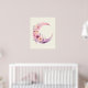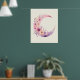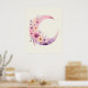 Poster com uma bela ilustração com uma lua rosa e púrpura da lua. Bonito flores silvestres cor-de-rosa e amarelas adornam este corpo celeste.