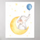 Poster Lua de Elefante Balão Estrelas Berçário Adorável