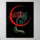 Um gato verde-cabeludo negro com asas de morcegos em uma lua crescente de colheita.
