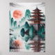 Lua Silenciosa Sobre O Jade Pagoda. Mergulhe na beleza tranquila desta paisagem digital inspirada no leste da Ásia, onde um pagode majestoso fica vigiando águas calmas sob uma lua de coral luminosa. Cercado por montanhas de jade suave e reflexões suaves, a cena evoca um senso de equilíbrio, serenidade e elegância eterno. A paleta harmoniosa de cores esmalte, vermelhos e cinzentos suaves cria uma experiência visual calorosa, fazer esta peça ideal para salas de meditação, decoração tranquila do interior ou amantes da estética artística asiática.