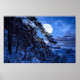 Poster Lua sobre abetos de neve e costa marítima à noite