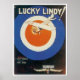 Vintage design de uma folha de música cobrir para "Lucky Lindy", com um avião representando o que Charles Lindberg voou através do Atlântico. Predomina o vermelho, o branco e o azul.