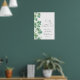 This elegant welcome sign features green watercolor shamrocks or clovers down the left side, perfect for a “Lucky Little One” St. Patrick’s Day baby shower. At the top, “Welcome” is displayed in handwritten script, with “Lucky Little One” in a sweet matching script above. The parent’s name and shower date appear on the right side in a classic serif font. Fonts and background colors are fully customizable to match your theme, making it a festive and charming way to greet guests.