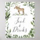 Dê aos seus hóspedes uma direção encantadora com a nossa comida de alce e placa de bebidas, com cor d'água verde eucalipto garland e uma elegante fonte de estilo manuscrito.
