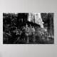 Vinte e dois Lumberjacks posam no subcorte de uma gigante Sequoia em 1884. Observe que o suporte corta a base da árvore. Aqui é onde eles inseriram as tábuas de sustentação para se manterem enquanto carregavam seus machados.