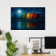 A radiant moon casts its glow over a tranquil body of water, illuminating a row of trees whose foliage transitions through a full chromatic spectrum—from verdant green to golden yellow, fiery orange, deep crimson, and violet dusk. The night sky, rich with stars and swirling clouds, envelops the scene in serenity, while the water below mirrors the vibrant gradient with gentle distortion. Lunar Spectrum invites viewers into a dreamlike moment where color, light, and reflection converge. It evokes themes of emotional transformation, seasonal passage, and the quiet magic of moonlit solitude.