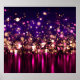 Fundo de brilho luxuoso com brilho. 3d ilustração, renderização 3d. Partículas em tons de roxo e ouro. Um fundo luxuoso com brilhantismo 3D encantador traz alegria. 3d, fundo, roxo, natal, padrão, vintage, ouro, ilustração, festa, luz, preto, diamante, luxo, neon, relva, festas, rosa, xmas, mágica, campo
