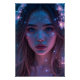Retrato fotorealista, altamente detalhado de uma mulher etérea iluminada pela luz cósmica macia. Sua pele brilha com blues e pinks bioluminescentes, espalhados por partículas tipo estrela. O cabelo fluindo enrola o rosto dela, entrelaçado com delicadas flores brilhantes. Sonho, iluminação cinematográfica melhora a atmosfera mágica e de outro mundo.