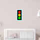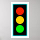 Representação gráfica em negrito da luz do sinal de controle de tráfego, em vermelho, amarelo e verde, com borda azul-clara.