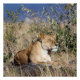 Uma leoa descansando à sombra de alguns pequenos arbustos. A imagem foi tirada num safari em Keny, na reserva Masai Mara Game. © Angelika Stern