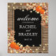 Poster de casamento bem-vindo da colheita russa, com um pano de fundo de madeira cônica, uma peça central de quadro negro, corda, abóboras de halloween, folhagem de outono, bolotas, um espalhamento de folhas de outono, luzes cintilantes de cordas e um modelo de texto personalizado. Para mais personalização, clique no botão "Personalizar" para modificar esta modelo. Todos os estilos, cores e tamanhos de texto podem ser modificados de acordo com as suas necessidades. Você encontrará outros itens de casamento na minha loja www.zazzle.com/special_stationery, no entanto, se você não encontrar o que está procurando, por favor, entre em contato comigo.