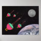 Uma fantasia de espaço de férias com naves espaciais de bolha orbitando a Terra com a lua à distância e um fundo de céu estrelado. Parece quase um tema clássico do Si-Fi ou uma invasão de alienígena espacial com as luzes de bolha como uma armada de naves espaciais. No entanto, é simplesmente uma ilusão de ficção científica como uma obra de arte.