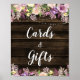 Ajude seus convidados a saber onde colocar seus cartões e presentes com este sinal de casamento floral roxo lavanda.