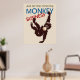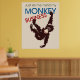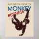 Uma design engraçada de um macaco pendurado num slogan colorido: "Deixa-me pensar no meu negócio de macacos". Um convite engraçado para qualquer um deixar você ser quem você realmente é.
