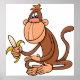 Um mionkey sentado segurando uma banana pronta para comer. Esta design parece realmente eficaz nesta Poster