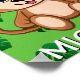 Este macaco fofo está sentado e esperando para brincar. Atrás dele há um fundo verde com um padrão de folhas da selva. Abaixo dele está o nome da sua criança, que está brincando na floresta tropical com ele. Adicione um companheiro fofo ao quarto ou berçário da sua criança.
