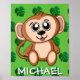 Poster Macaco de Safari Fofo Verde Nome Cartoon Floresta