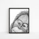Poster Macaco Orangutan, Arte de Parede Preta e Branco