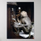 Linda e realista pintura a óleo de macaco com olhos castanhos, pêlos de cinza e sobrancelhas expressivas segurando uma vela. Maravilhoso óleo na canvas do pintor austríaco nascer de Praga, Gabriel von Max (1840-1915). presente de excelente para o amante de macacos em sua vida.
