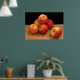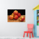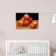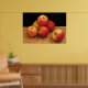 Esta poster apresenta uma composição muito simples, ainda viva, de seis lindas maçãs vermelhas e amarelas brilhantes em um tapete de palha contra fundo preto.