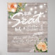 Escolha Um Assento Não Um Poster de Sinal De Casamento Lateral - Script Elegante com Rosas Brancas de Pêssego Floral e Luzes de Cordas no Fundo Russo da Madeira. Um Design Perfeito Para O Seu Grande Dia! Todo Estilo De Texto, Cores, Tamanhos Podem Ser Modificados Para Ajustado Das Suas Necessidades.