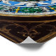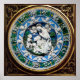Elegante clássico, vibrante Renascentista arte fina, obra-prima de Bottega della Robbia ( Florence - Itália ) em cores brancas, azuis, verdes, castanhas.Uma cena de natividade antiga, estável, animais, árvores, cerejas aladas no céu azul sobre uma coroa floral decorativa verde e amarela brilhante.