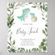 Dê aos seus hóspedes uma direção encantadora com nossa mamãe dinossauro adivinhando a placa de comida bebê, com cor aquática verde eucalipto garland e uma elegante fonte escrita à mão.