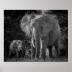 POSTER MÃE E BEBÊS ELEFANTES - PRETO E BRANCO