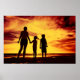 Silhuettes de mãe e filhos na praia durante o pôr do sol