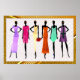 Esta vibrante arte de poster celebra a essência da Mágica Menina Negra, desenhando inspiração nos flappers Harlem Renascance do 1920. A trabalho de arte apresenta elegantes silhuetas negras de mulheres confiantes adoradas de forma brilhante, ousada e colorida. Suas roupas são uma mistura impressionante de vintage e estilos contemporâneos, mostrando a beleza do eterno e o poder das mulheres negras. O fundo é uma mistura viva de padrões e cores douradas, refletindo a energia e a criatividade da era da Renascença do Harlem. Esta peça é um tributo à força, graça e excelência do Queens Nubianos, capturando o espírito de empoderamento e confiança que define a Mágica Menina Negra.