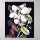 Flor de magnólia branca num galho com folhas verdes. Desenho botânico da safra.