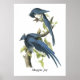 Este é um impressão de dois macho de Magpie. Este jay é azul com um peito branco. Eles têm uma crista na cabeça. sua cauda é longa e aparada em branco nas penas menores da cauda do lado.
