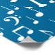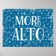 Um design Mais Alto, divertido e feliz, com um fundo azul com texto branco e notação musical.
