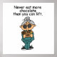 Mildred é uma senhora idosa, cabelada por cinzas, que é bonito a exprimir as suas opiniões! Nessa design engraçada e fofa ela proclama: "Nunca coma mais chocolate do que você pode levantar."! Camisetas, bolsas, cartões, adesivos, ímanes, chaveiros, ornamentos, relógios e muito mais para amantes de chocolate!