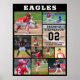 Crie uma exibição personalizada de fotos esportivas impressa em um impressão ideal para o reconhecimento noturno do segundo grau ou para a cerimônia de prêmio utilizando este modelo de colagem de fotos fácil de carregar com 11 fotos em várias formas e tamanhos com o nome da sua equipe ou o nome do jogador no topo, o número do jogador e o ano escolar ou o texto personalizado na sua escolha de cores de texto e fundo que você pode mudar para as cores da escola no EDIT (mostrado) em preto e branco). OPÇÕES: O exemplo é mostrado em um tamanho de 18 x 24 pol em Papel de Valor (Matte); outros tamanhos de impressão e qualidade de papel padrão e personalizados, arquivo de Download Digital Instantâneo para impressão local ou transferência do design para um conselho de espuma, faixa, canvas ou outras opções de produto estão disponíveis na página de pedido. DICA DE REDIMENSIONAMENTO: Escolha Tamanho Personalizado para bordas pares alterando a altura e a largura proporcionalmente após clicar no ícone UNLOCK (parece um link de cadeia). ASSISTÊNCIA: para obter ajuda com a modificação ou personalização do design, alteração de cor, redimensionamento ou transferência do design, entre em contato com o designer ANTES DE ENCOMENDAR através da guia MENSAGEM de Bate-papo Zazzle ou envie um e-mail para makeitaboutyoustore@gmail.com.