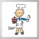 Um homem de vareta em um chapéu de chef e avental segura um bolo que ele criou em T-shirts, aventais, cartões, adesivos, ímanes, sacos de tote, chaveiros, travesseiros, revistas e outros itens.