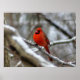 Um Cardeal vermelho brilhante adiciona uma pop de cor num dia de neve sonhador.