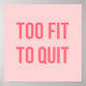 "Muito Ajustado Para Sair" Engraçada citação motivacional, em um design tipográfico rosa e rosa quente. Inspire-se para ficar forte, olhe quente, e seja o seu melhor. Seria um presente ideal para um treinador pessoal, treinador, rato de ginástica, construtor de corpos, etc.
