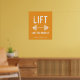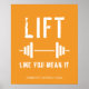 O design ousado e moderno apresenta um poster cor laranja brilhante com um ícone de sino e a citação "Levante como você quer dizer" em uma humilde tipografia branca. Personalize com seu nome de ginástica ou exclua se preferir. Um elemento de decoração exclusivo para sua casa, ginástica ou dormitório
