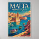 Poster Malta Coast Illustration Travel Art Vintage