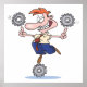 Um homem engraçado parado em uma engrenagem enquanto balanceava engrenagens. Esta design parece realmente eficaz nesta Poster