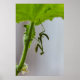 Bebê rezando mantis pendurado de cabeça para baixo sob uma fábrica de pepinos.