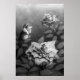 Um desenho de lápis em escala de cinza de três rosas em diferentes palcos de floração no orvalho matinal. Esta imagem tem uma história interessante. Correio eletrônico para mais informações john@liquidgenius.net