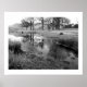 Numa manhã de inverno, o gelo cobrir a praia da Baía de Strandshag, em Derwentwater, no Distrito do Lago de Inglaterra. Foto preta e branca com borda branca.